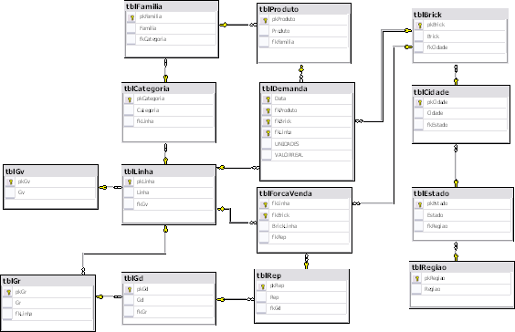 Para este trabalho, criamos no Firebird um banco de dados chamado “Farmaceutico”, que armazena informações de demanda de produtos farmacêuticos. O diagrama desta base é exibido na Figura 1.