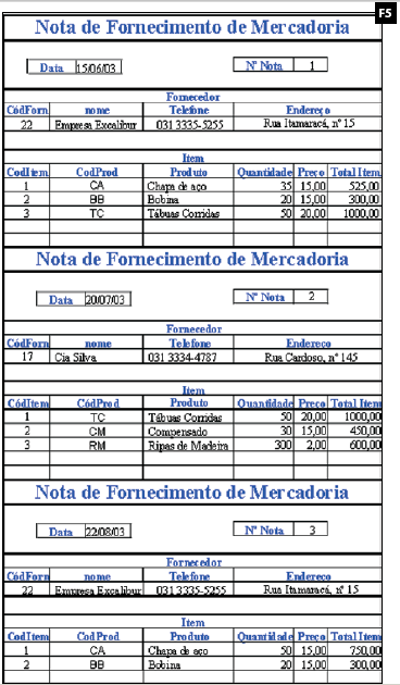 NroNota è { Data, CodForn, Nome, Telefone, Endereço}