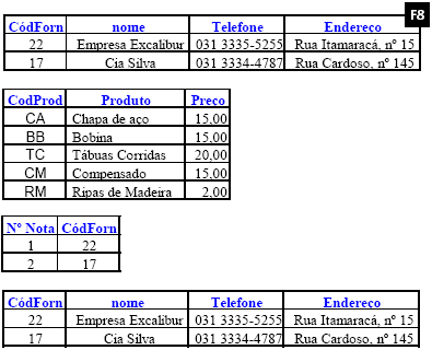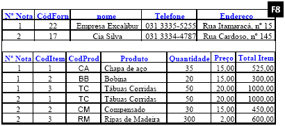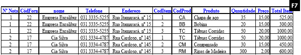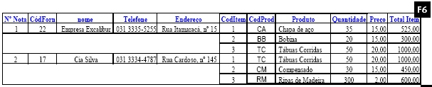 Com o número da nota, determinamos os campos Data, CodForn, Nome, Telefone e Endereço: