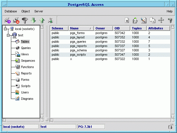 Existem também utilitários gráficos para administração do PostgreSQL. Dentre eles, podemos citar o pgAdmin (www.pgadmin.org) e o pgAccess (www.pgaccess.org). Vide figura 1.