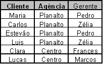 Vejamos um exemplo. Suponha que em um processo de normalização você chegue na tabela da Figura 2, que contém os dados de cliente, agência e gerente. As colunas da chave primária estão indicadas em negrito.