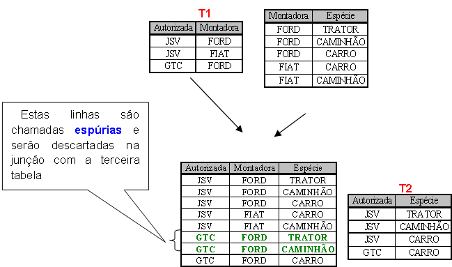 Estas linhas são chamadas espúrias e serão descartadas na junção com a terceira tabela |