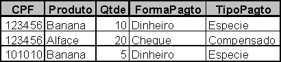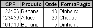 · {CPF, Produto} è {Qtde, FormaPagto, TipoPagto}