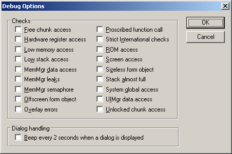 Em seguida, será exibido um formulário semelhante ao da Figura 4. Nessa tela, desmarque todas as opções e pressione OK. Com isso estamos solicitando ao Emulator que ele não depure o aplicativo, afinal o próprio HB++ é capaz de realizar esta tarefa.