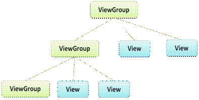 Em Android, todos os componentes de interface gráfica são representados por subclasses de android.view.View que representam os componentes gráficos (os chamados widgets) como TextView, Button , TextEdit, RadioButton, Checkbox, etc; e a classe android.view.ViewGroup, que representa um container de Views e também ViewGroups. Ela é a classe base para componentes de layouts, como LinearLayout, FrameLayout, AbsoluteLayout, RelativeLayout, TableLayout, etc.