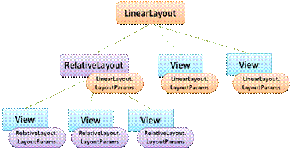 Para que os componentes possam ser acomodados de acordo com o layout de seu pai, os mesmos devem manter uma relação de obediência. Sendo assim, cada filho deve configurar os seus parâmetros de layouts, por meio da classe ViewGroup.LayoutParams, que permite que estes determinem suas propriedades de posição e tamanho referente ao layout de seus pais.
