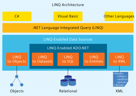 É importante notar que LINQ é simplesmente a linguagem que permite a realização das queries. Paralelamente a essa linguagem temos uma série de ferramentas ou providers que habilitam o uso do LINQ contra diversas fontes de dados, como por exemplo, o LINQ to SQL, que habilita o uso do LINQ contra bases de dados do SQL Server.