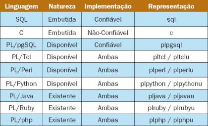 Tabela 1. Linguagens procedurais existentes no PostgreSQL.