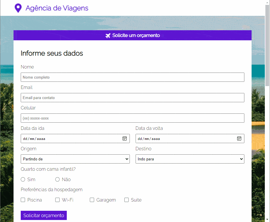 Construa uma página interativa para uma agência de viagens