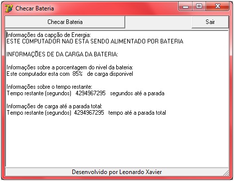 Agora você já pode prever o quanto de bateria tem o computador em que esta rodando o seu sistema. Prevenir paradas inesperadas em seu sistema é uma excelente ferramenta para manter a integridade de seu banco de dados.