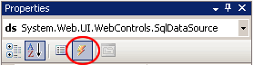 Esse evento ocorre sempre depois que um método Select() terminar. Então é nele que vamos descobrir quantos registros retornou esta consulta antes mesmo de renderizar os controles. Volte para o modo Design, selecione o controle SqlDataSource e no painel de propriedades, clique no botão de Events, figura 1.
