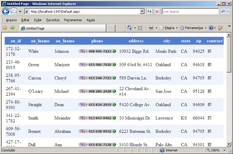 7. Execute o proejto e qdo ele for carregado clique no botão Ok. Deverá ser apresentada uma página com uma relação de autores.