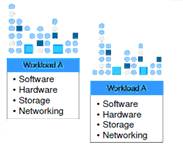 A implementação ocorre através de um pool de servidores funcionando como se fosse um gigante computador através de uma única camada de software de gerenciamento de máquina virtual. A Carga de trabalho pode ser espalhada através do pool de recursos de forma equilibrada. Se existir a necessidade de uma carga de trabalho particular, a nuvem privada funciona com a elasticidade necessária.