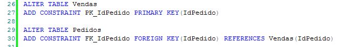 Adicione uma constraint Primary Key na tabela Vendas e uma constraint Foreign Key na tabela Pedidos, interligando assim as duas tabelas (veremos mais sobre relacionamentos daqui a pouco):