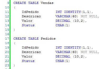 Então abra sua versão do SQL Server e crie duas tabelas bem simples, como a imagem abaixo ilustra: