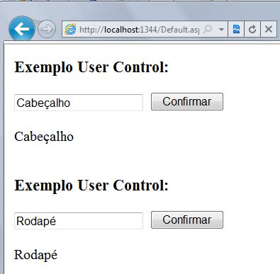 Como você pode ver acima, além de podermos usar o mesmo User Control quantas vezes precisarmos em nossa página, ele pode apresentar diferentes comportamentos em cada “instância” usada por nós.