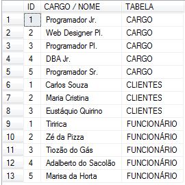 Perceba que criei uma coluna virtual dando a ela o alias Tabela, para indicar de qual tabela pertence determinado registro.