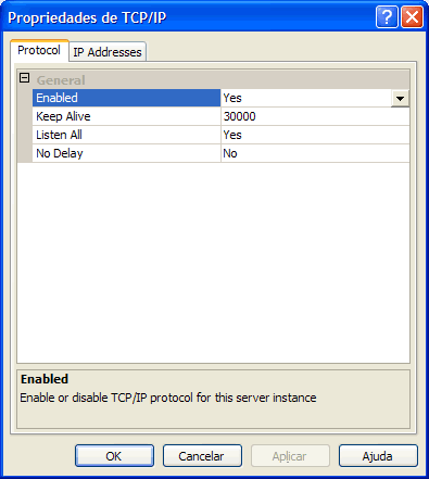 Nesta ferramenta, você deverá garantir que o TC/IP está, de fato, habilitado.