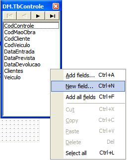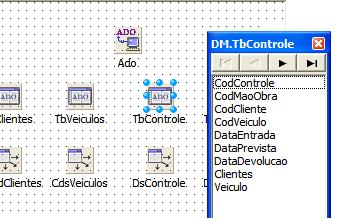 Abra o DataModule(DM) , de um duplo clique na tabela TBControle, e arraste para o Panel2 os itens Controle,Clientes e Veiculos.