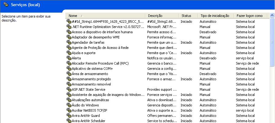 Aqui vemos todos os serviços do sistema operacional, perceba que nem todos estão com o status Iniciado.