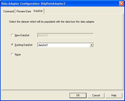 Clique de direita sobre o BdpDataAdapter2 e selecione a opção Configure Data Adapter. Na aba DataSet selecione a opção Existing DataSet: