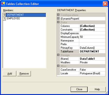 Abra a propriedade Tables do DataSet e você deverá ver os dois DataTables gerados:
