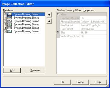 Abra o editor da propriedade Images do ImageList e adicione seis imagens, clicando botão Add: