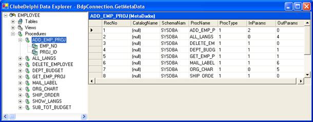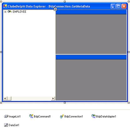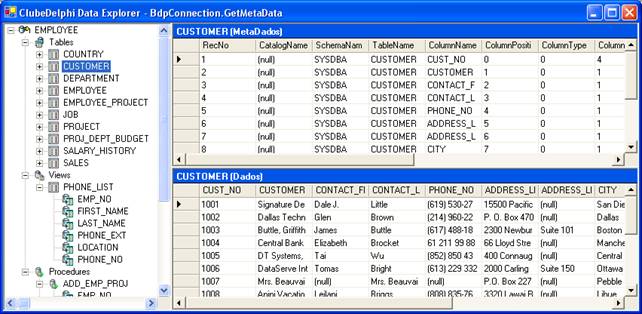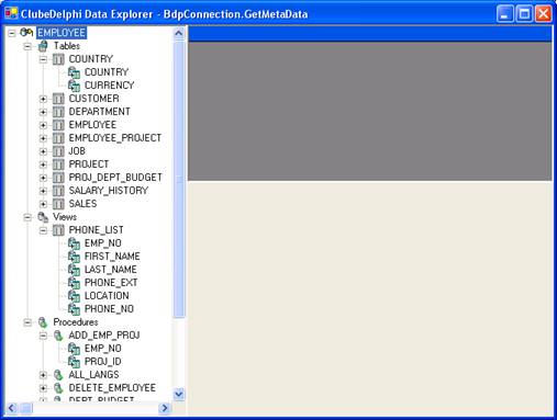 O que faremos agora é uma aplicação semelhante ao Data Explorer da IDE (BDS), que permitirá ao usuário explorar os objetos do banco de dados Employee dos demos do Interbase.