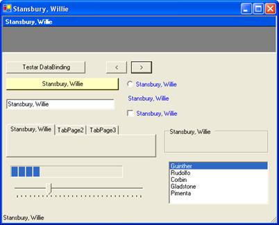 Observe o DataBinding em ação na tela abaixo, onde exibimos valores do DataTable nos mais variados tipos de componentes: