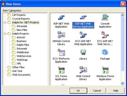 Para ver como isso funciona na prática, no Delphi 2005, crie uma nova aplicação Web Service chamada AppDados.
