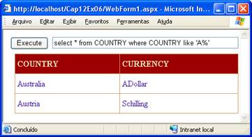 Execute e teste a aplicação digitando um comando Select no TextBox. A instrução é enviada ao servidor, que processo a consulta devolve os dados em XML: