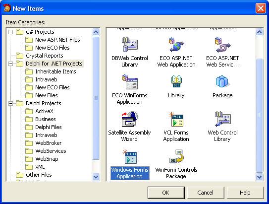 No Delphi 2005, inicie um nova aplicação Windows Forms: