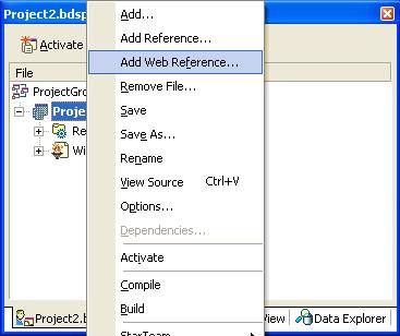 Vamos adicionar uma referência ao Web Service criado anteriormente. No Project Manager clique de direita no nome do assembly e escolha Add Web Reference: