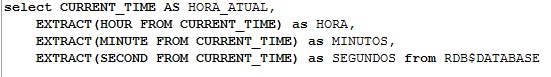EXTRACT HOUR/MINUTE/SECOND – Extrái a hora, os minutos e os segundos, respectivamente, de uma hora.