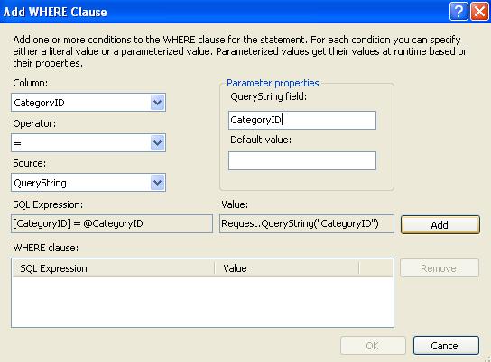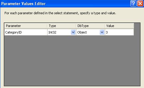 Clique em Add, OK e Next. Se quiser clique em Test Query, passe um ID de 1 a 8 (já que o valor dos ID’s das tabelas de Categorias são somente estes oito) no campo Value e clique em OK.