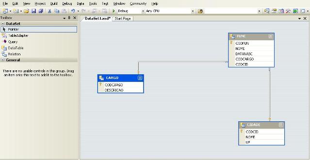 Chamamos este DataSet de DataSet Tipado, devido o mesmo já possuir o Schema referente à estrutura das tabelas. Sendo assim criaremos todos os objetos para nossa aplicação neste DataSet.