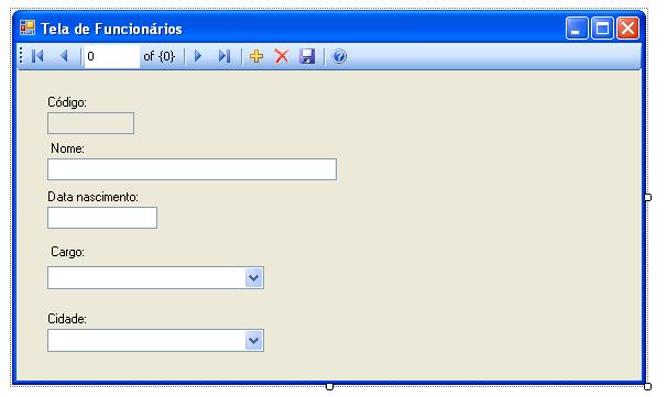 Como a tabela de Funcionários possui FK com as Tabelas de Cargo e Cidade, precisamos disponibilizar os valores destas tabelas para que o usuário consiga gravar todos os dados do Funcionário.