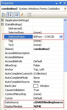 SelectedValue: Campo da tabela corrente que receberá o valor do item do ComboBox selecionado.