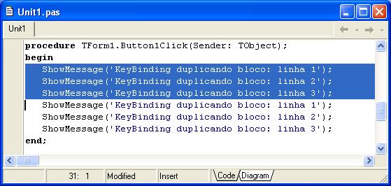 Veja que a linha de código na qual o cursor está posicionado é duplicada abaixo.