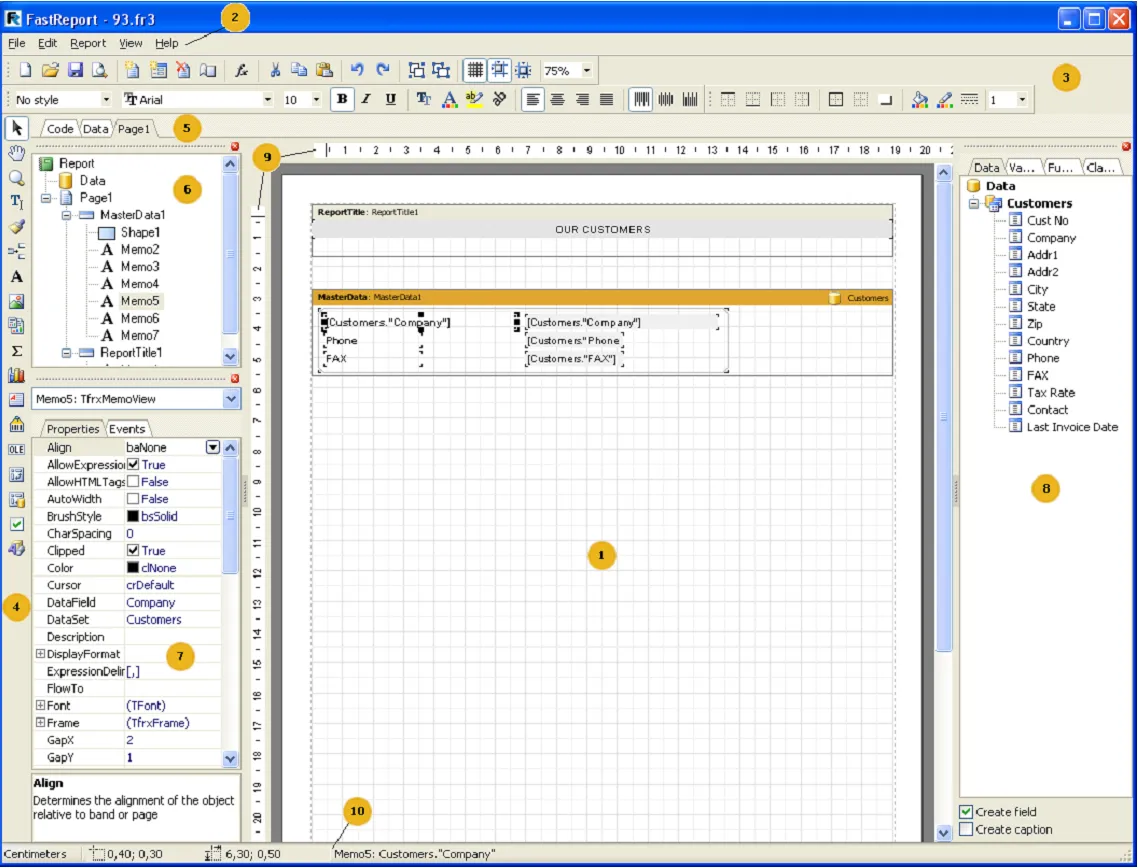 Figura 2. Ambiente de desenvolvimento de relatórios (fonte: FastReport User’s