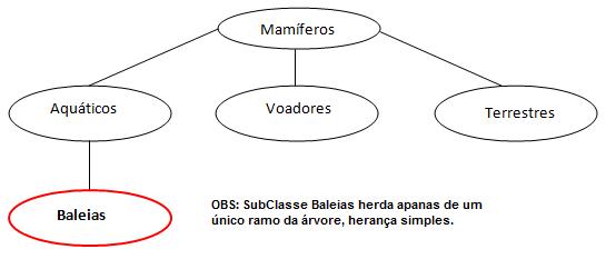 Quando uma subclasse herda características a partir de um único ramo da classe diz-se tratar de herança simples, independente da quantidade de superclasses existente no ramo veja figura 2.