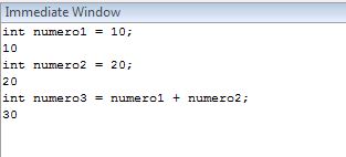 Figura 1. Criando variáveis e as somando, no Immediate Window