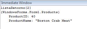 Também é possível utilizar o Immediate para operações mais complexas, como por exemplo, como quando queremos saber o conteúdo de um valor de uma lista genérica, ilustrado pela Figura 2
