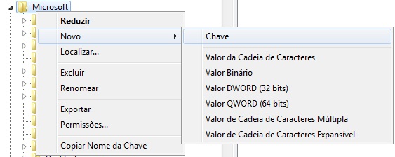 Pra resolver fiz o seguinte: Fui ao registro do Windows (só apertar Windows + R e digitar regedit na janela que surge), depois fui em HKEY_CURRENT_USER\Software\Microsoft e criei uma chave, como é ilustrado na Figura 02.