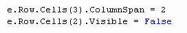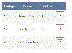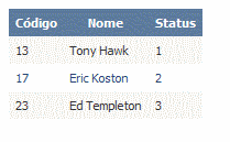 Agora podemos sumir com a célula que guarda o nosso status e adicionar o valor 2 no colspan da ultima coluna, para que a nossa Tabela HTML (Resultado Final do GridView Renderizado) não fique errada.