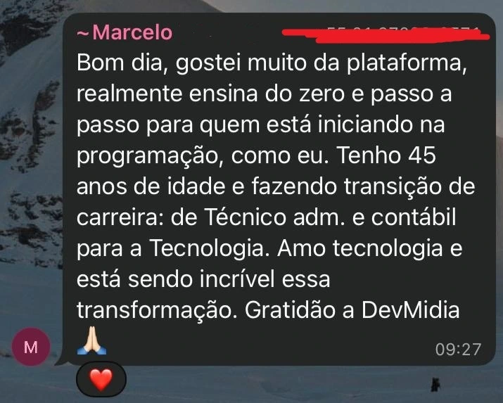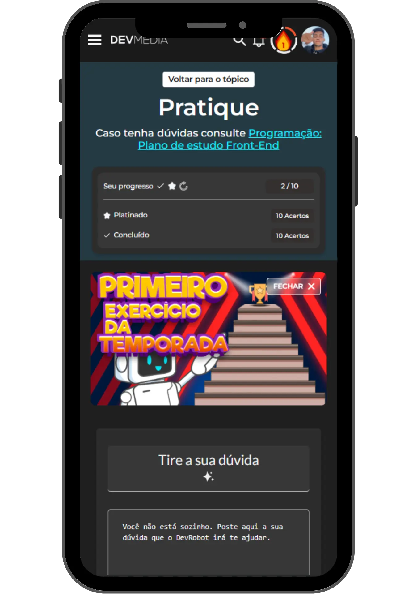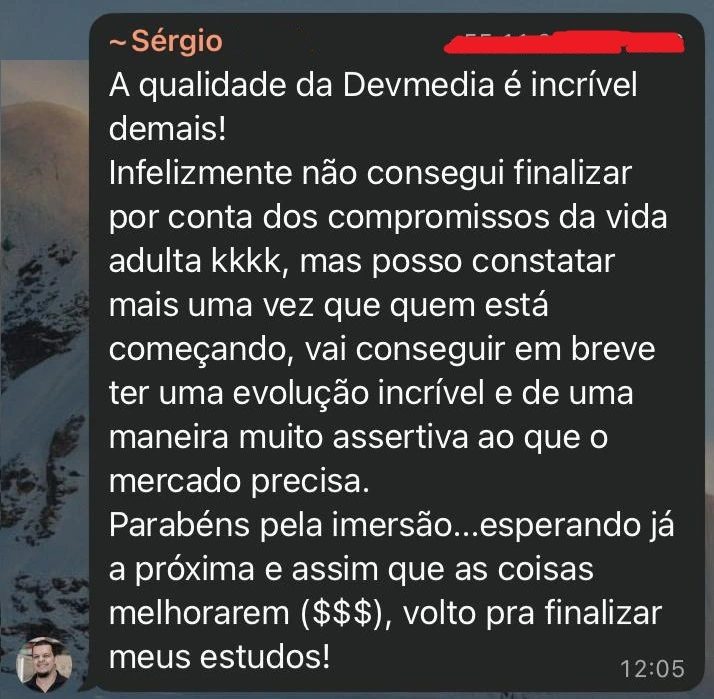 A DevMedia não é apenas mais uma plataforma de cursos, somos uma referência no ensino de programação há 25 anos. Com um histórico sólido e mais de 100 mil alunos formados, nossa missão sempre foi entregar uma experiência de aprendizado inovadora, prática e eficaz.