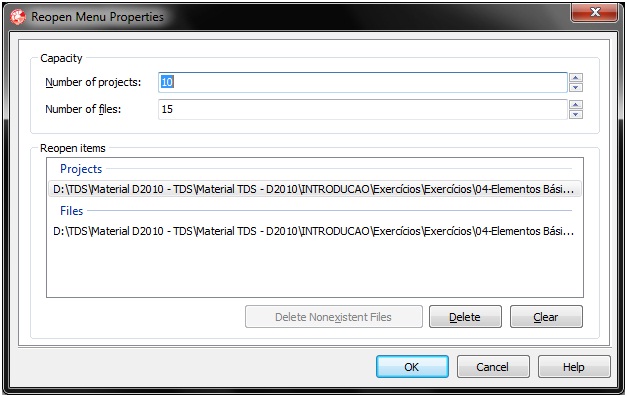 Podemos agora configurar o Reopen do Delphi, além de exibir os últimos projetos, podemos também definir o número de projetos que devemos visualizar. Atraves do Menu Filen / Reopen / Properties podemos configurar o mesmo.