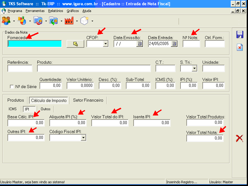 A tabela Master (daqui por diante referenciada como tabela de “NOTAS_FISCAIS”) armazena as informações totalizadas das notas fiscais, como valor total dos produtos, valor total do IPI, CFOP, CNPJ do fornecedor/destinatário e etc.