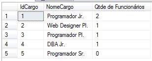 WHERE IDCARGO = CARGO.IDCARGO) AS 'Qtde de Funcionários'