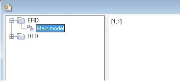 Veja abaixo a tela principal de manipulação do Modelo, do lado direito temos as paginas de modelagem, com o modelo principal e também veremos mais a frente Submodelos, e ao lado organização em ERD(Diagrama de Entidade e Relacionamento) e DFD(Diagrama de Fluxo de Dados)